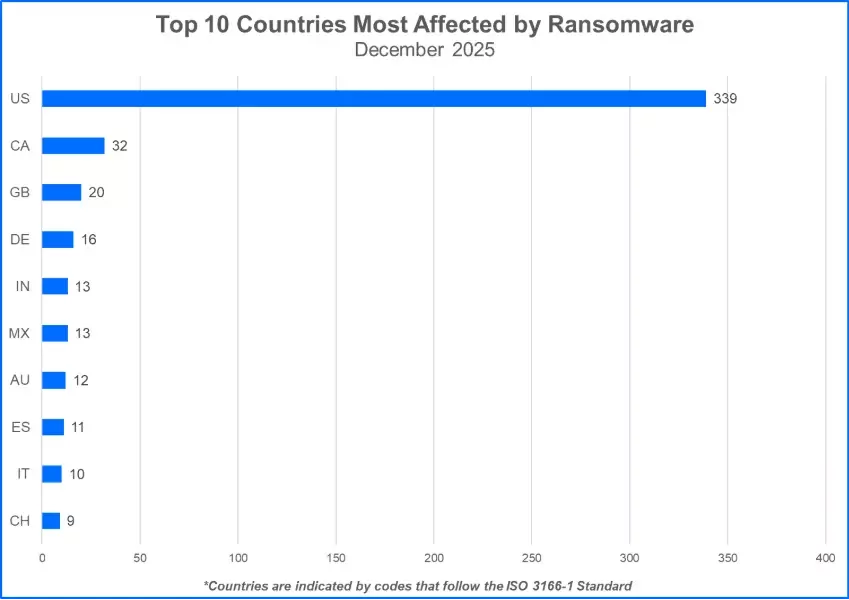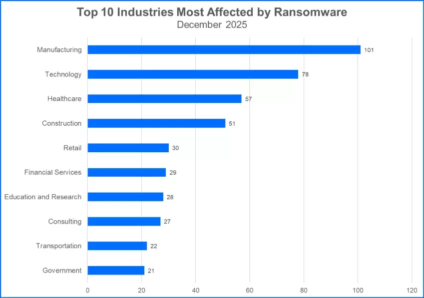 Clop Climbs to Second Place: Clop claimed 102 victims, surpassing Akira and reclaiming a position in the Top 10. The majority of Clop’s victims in the past month have been organizations in the manufacturing, technology, and healthcare industries. The group has repeatedly exploited a zero-day vulnerability to compromise numerous systems. Clop’s attacks have also targeted systems impacted by CVE-2025-61882, which leads to the compromise of Oracle Concurrent Processing. Organizations using Oracle E-Business Suite versions 12.2.14 to 12.2.3 are advised to implement the latest patch to mitigate this flaw.