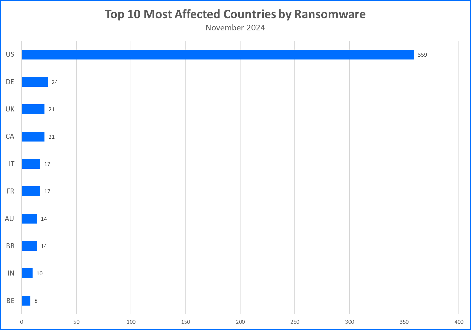 Ransomware gangs prioritize targets where they can potentially squeeze the most money out of their victims. This often means focusing on developed countries. Now, let’s see the top 10 countries that took the biggest hit from these attacks.